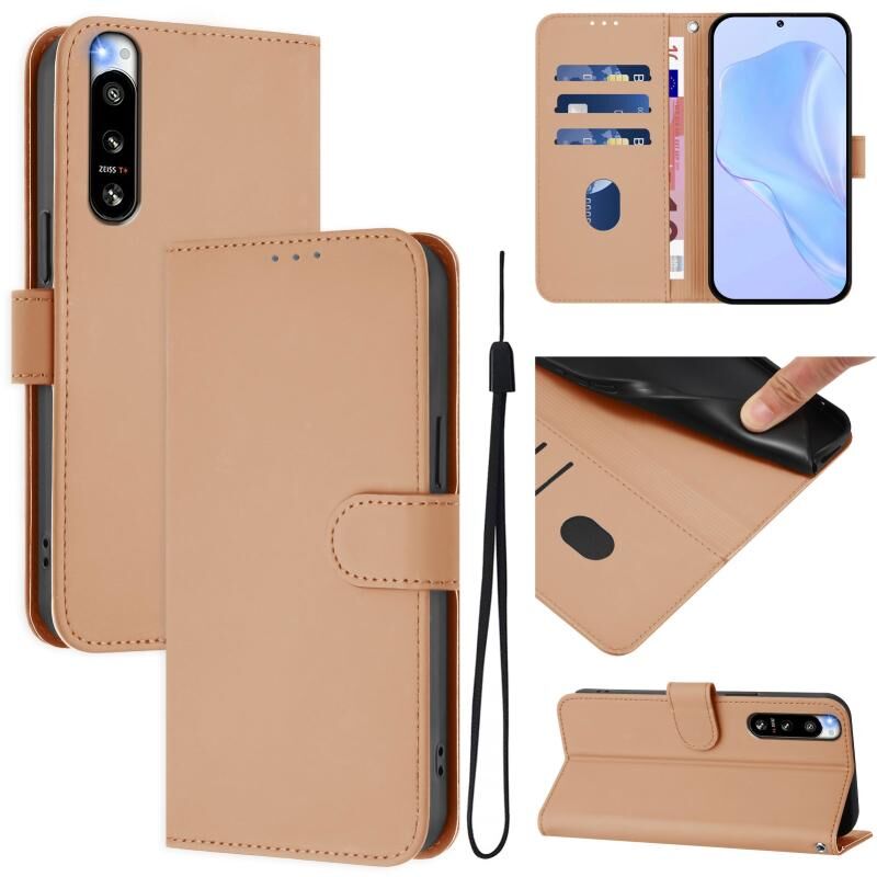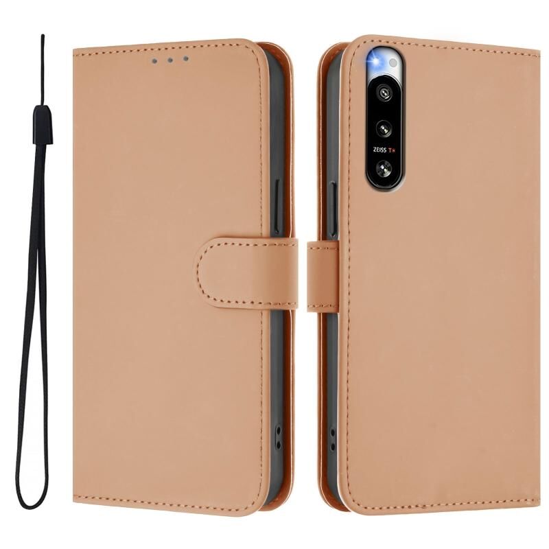For Sony Xperia 5 IV Skin Feel Solid Color Leather Phone Case with Lanyard(Nude)
