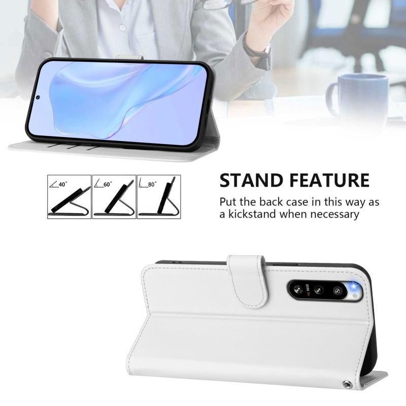 For Sony Xperia 5 IV Skin Feel Solid Color Leather Phone Case with Lanyard(White)
