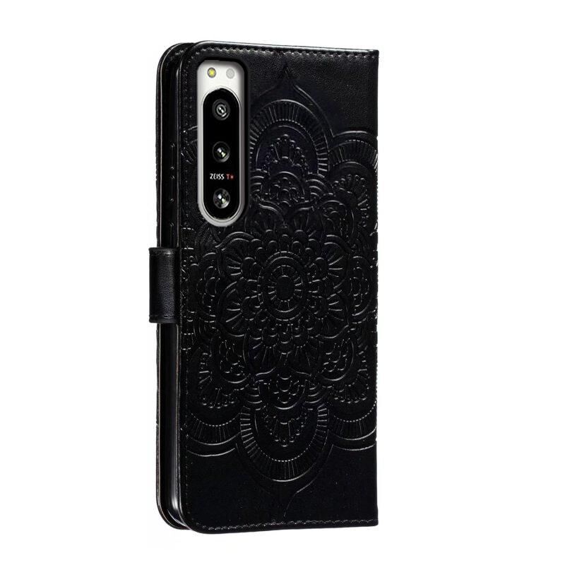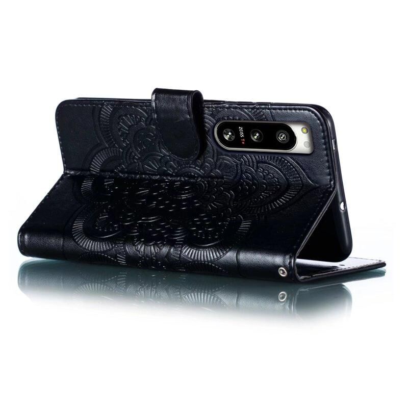 Για Sony Xperia 5 IV Sun Mandala ανάγλυφο μοτίβο τηλέφωνο δερμάτινη θήκη (μαύρο)