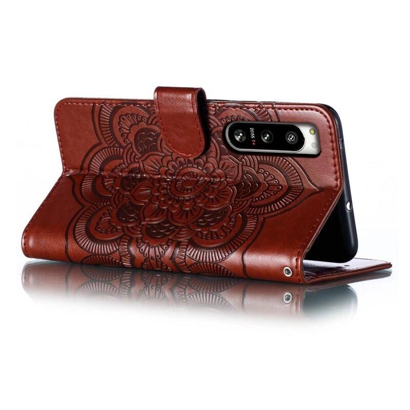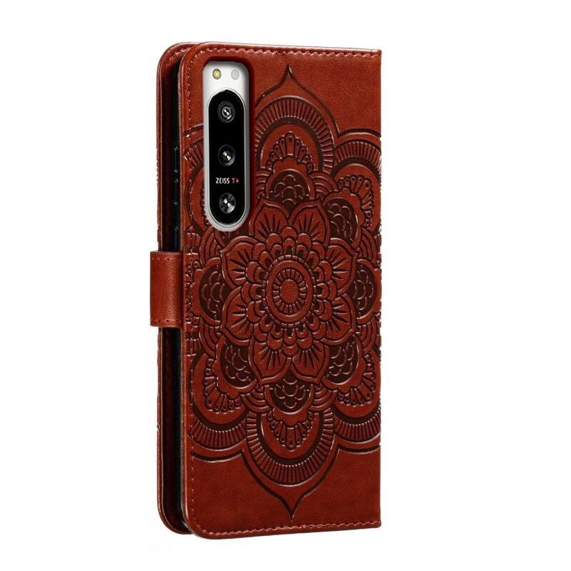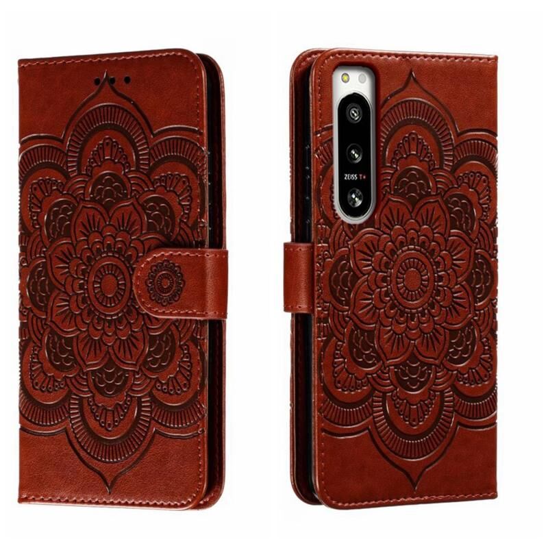 Για Sony Xperia 5 IV Sun Mandala ανάγλυφο μοτίβο τηλέφωνο δερμάτινη θήκη (καφέ)
