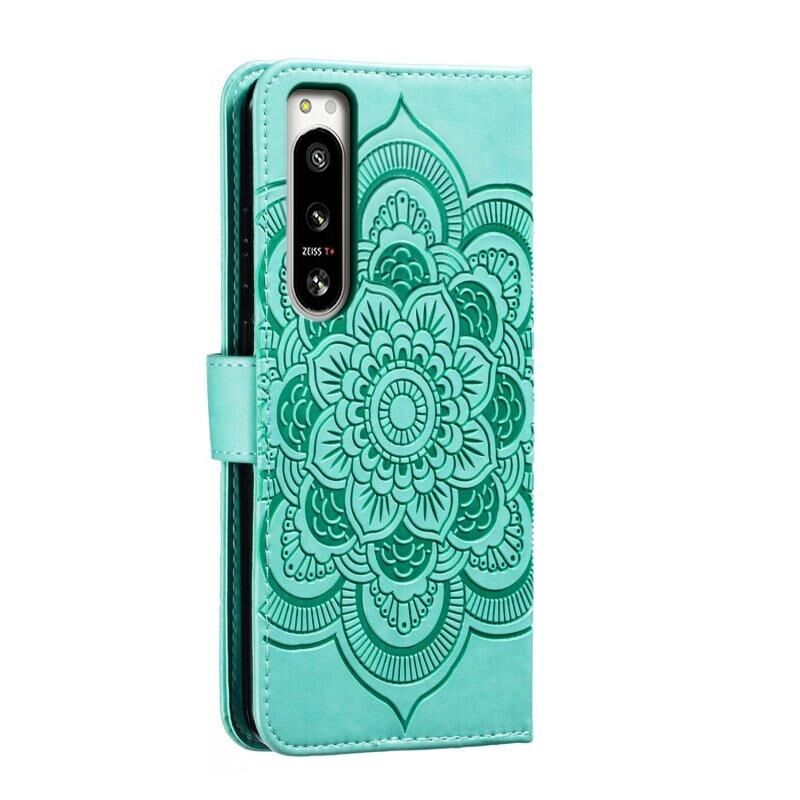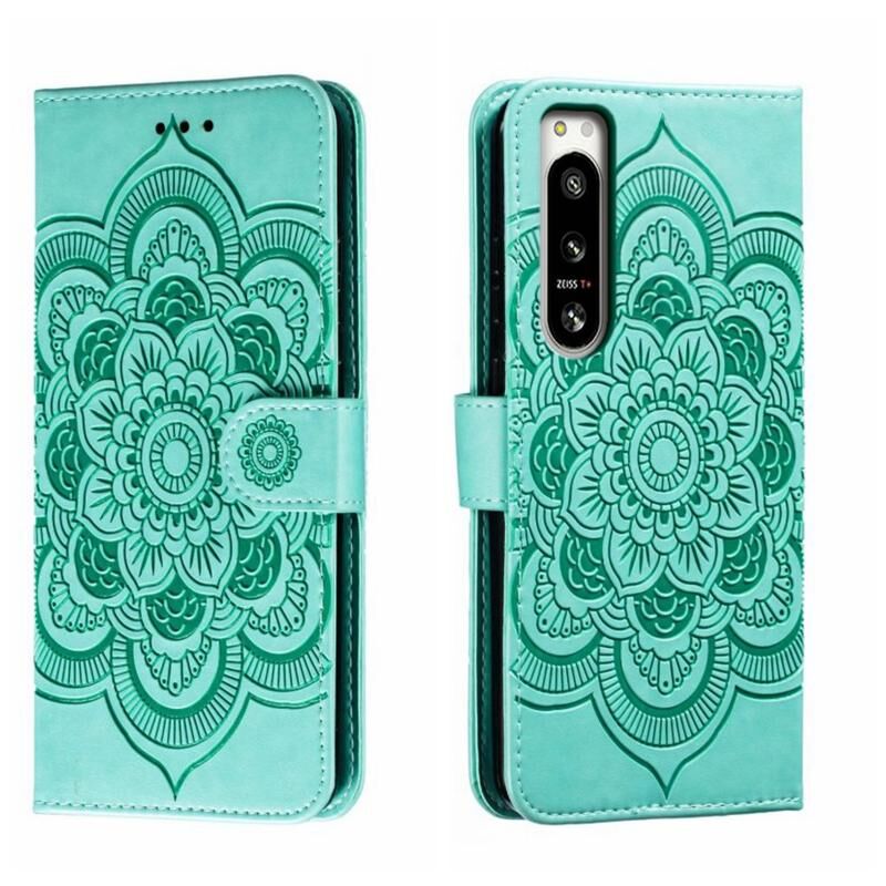 Για Sony Xperia 5 IV Sun Mandala ανάγλυφο μοτίβο τηλέφωνο δερμάτινη θήκη (πράσινο)