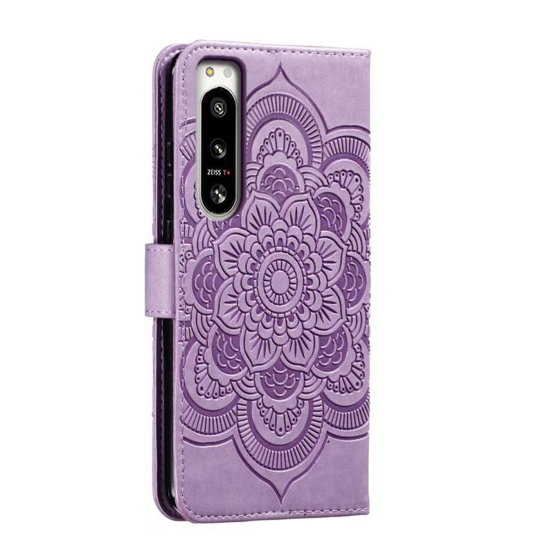 Για Sony Xperia 5 IV Sun Mandala ανάγλυφο μοτίβο τηλέφωνο δερμάτινη θήκη (μωβ)