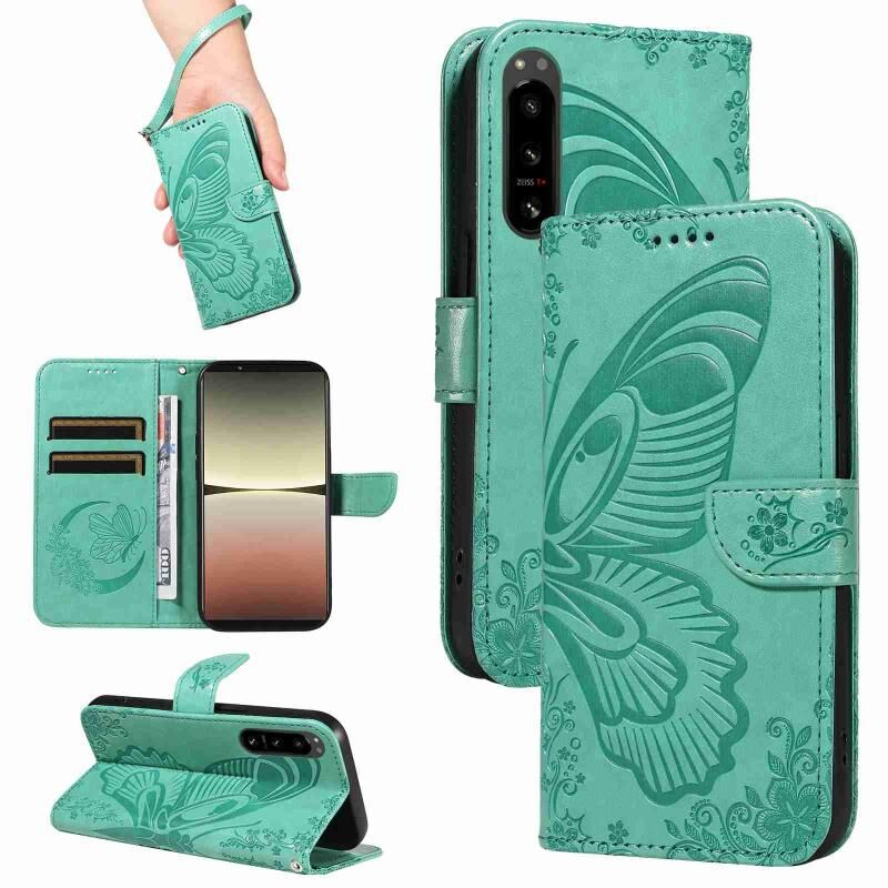 Θήκη τηλεφώνου από δέρμα με ανάγλυφο σχέδιο πεταλούδας Swallowtail για Sony Xperia 5 IV (Μπλε)