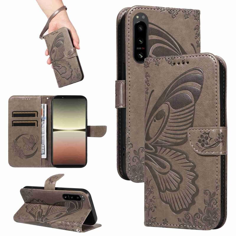 Θήκη τηλεφώνου από δέρμα με ανάγλυφο σχέδιο πεταλούδας Swallowtail για Sony Xperia 5 IV (Μπλε)