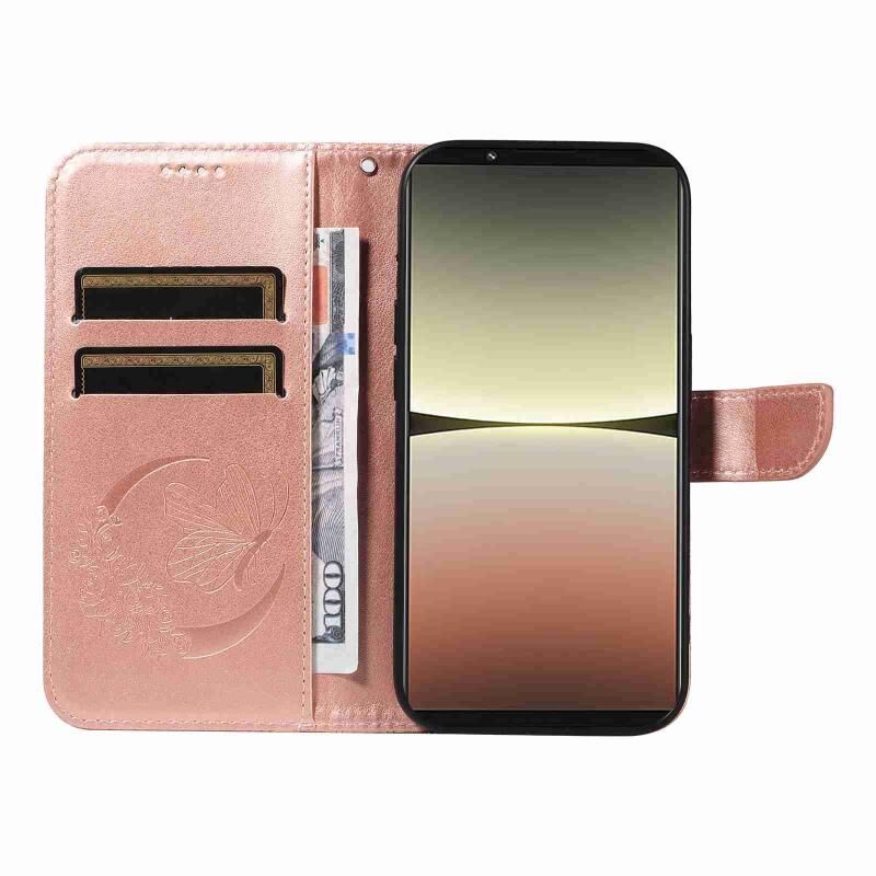 Θήκη τηλεφώνου από δέρμα με ανάγλυφο σχέδιο πεταλούδας Swallowtail για Sony Xperia 5 IV (Μπλε)