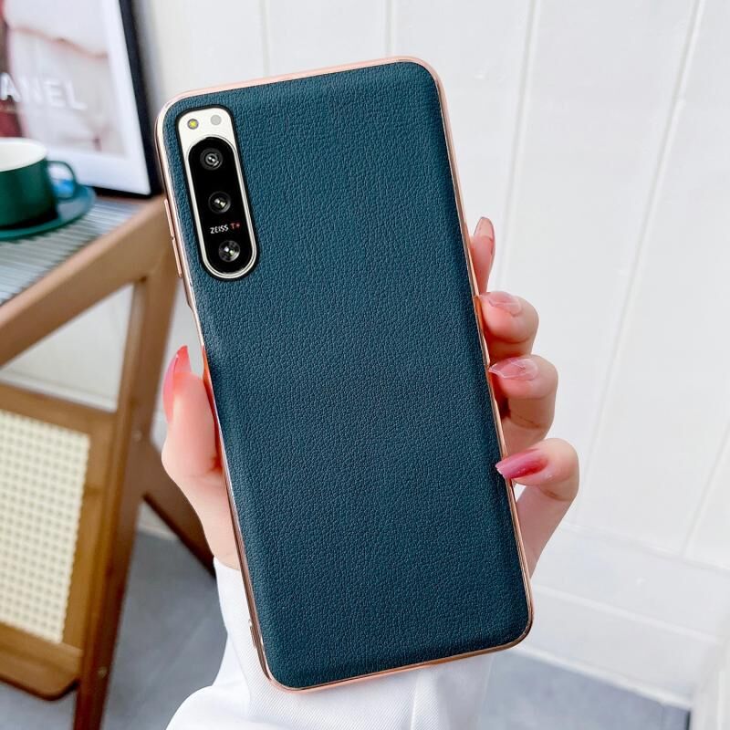 Θήκη τηλεφώνου από γνήσιο δέρμα με νανο-επίχρυση, σειρά Waves για Sony Xperia 5 IV (πράσινο)