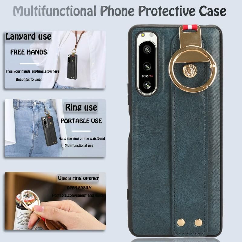 Για Sony Xperia 5 IV Wristband δέρμα πίσω υπόθεση τηλεφώνου (μπλε)