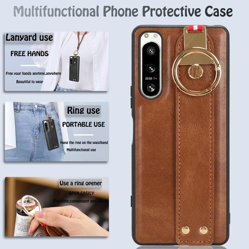 Για Sony Xperia 5 IV Wristband δέρμα πίσω υπόθεση τηλεφώνου (καφέ)