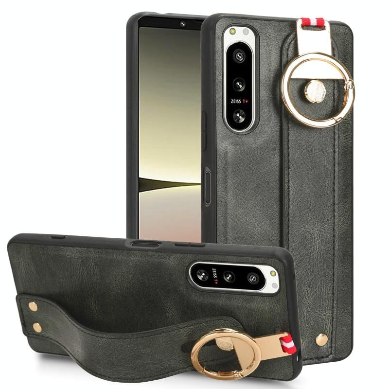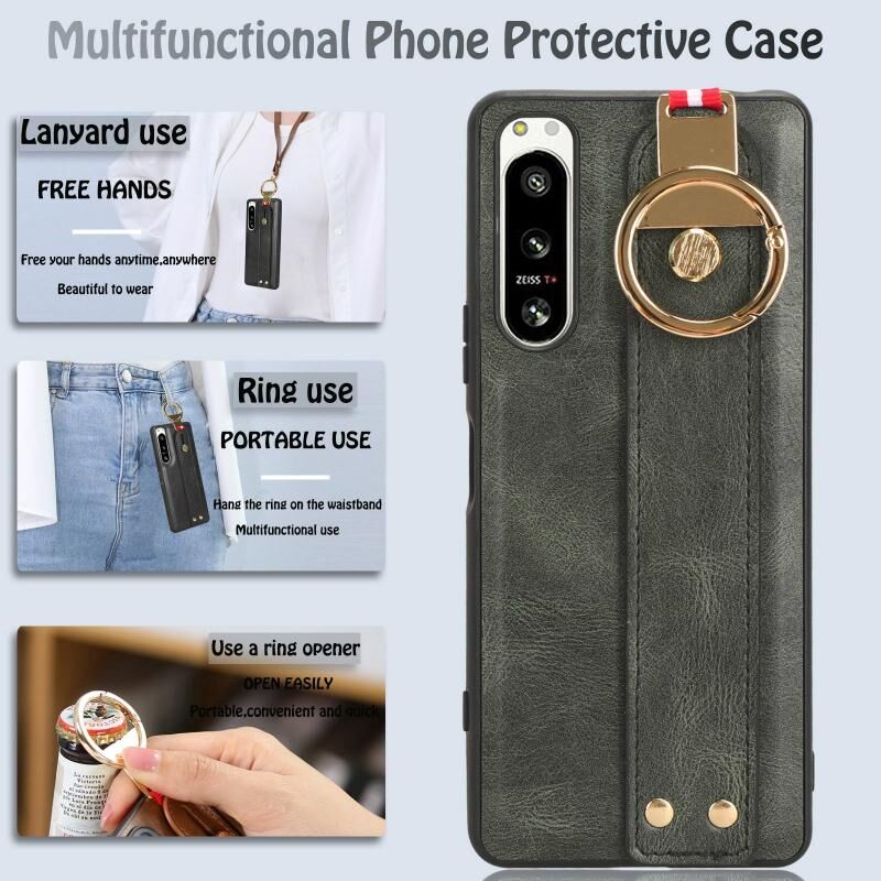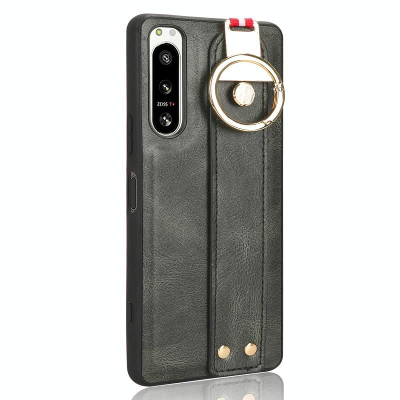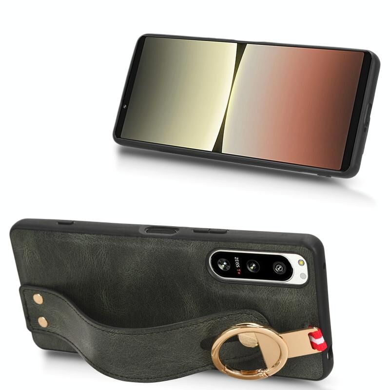 Για Sony Xperia 5 IV Wristband δέρμα πίσω υπόθεση τηλεφώνου (πράσινο)