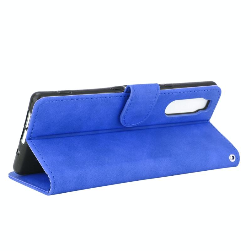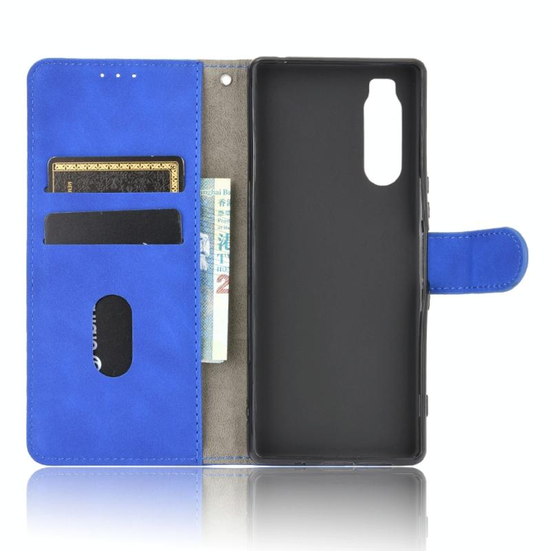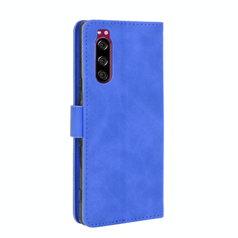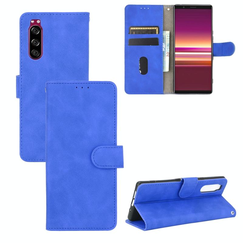 For Sony Xperia 5 Solid Color Skin Feel Magnetic Buckle Horizontal Flip Calf Texture PU Leather Case with Holder & Card Slots & Wallet(Blue)