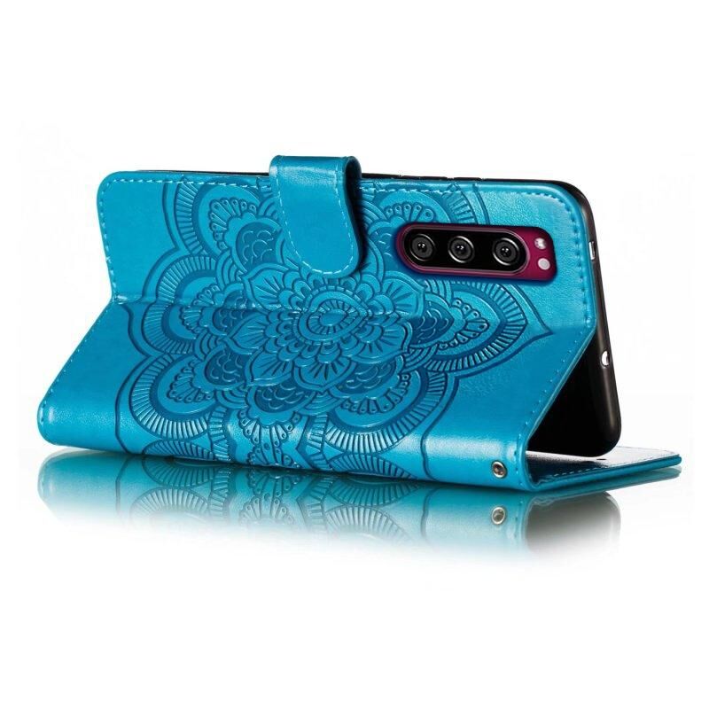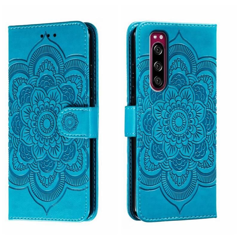 Για Sony Xperia 5 Sun Mandala ανάγλυφο μοτίβο τηλέφωνο δερμάτινη θήκη (μπλε)
