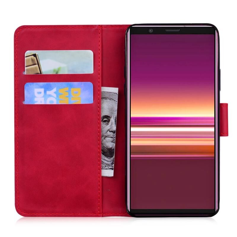 Θήκη δέρματος οριζόντιας αναδίπλωσης με ανάγλυφο μοτίβο τίγρης για Sony Xperia 5 με βάση & υποδοχές καρτών & πορτοφόλι (Μαύρο)