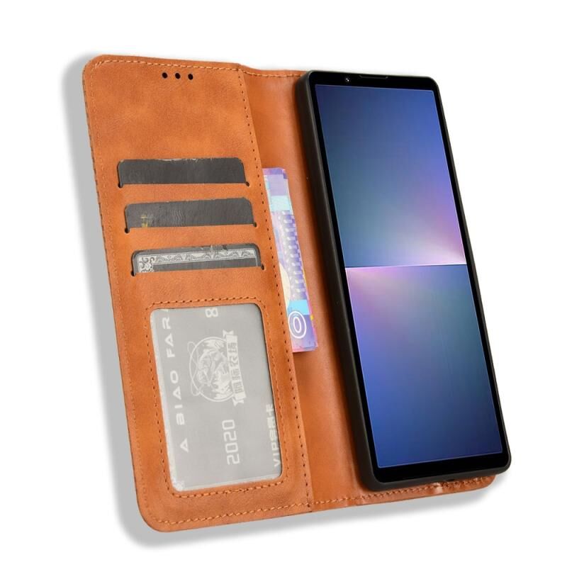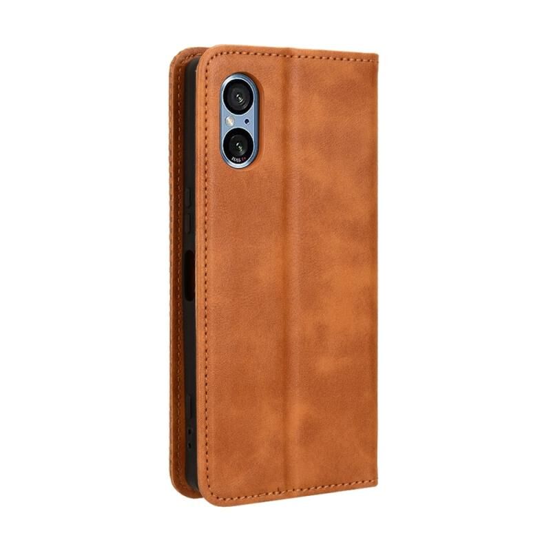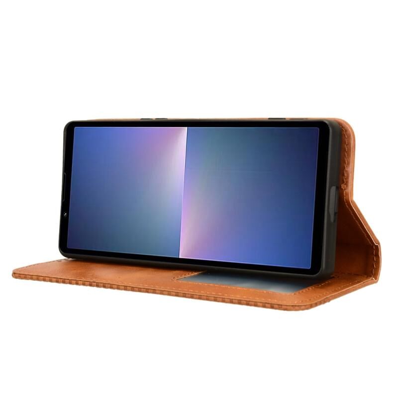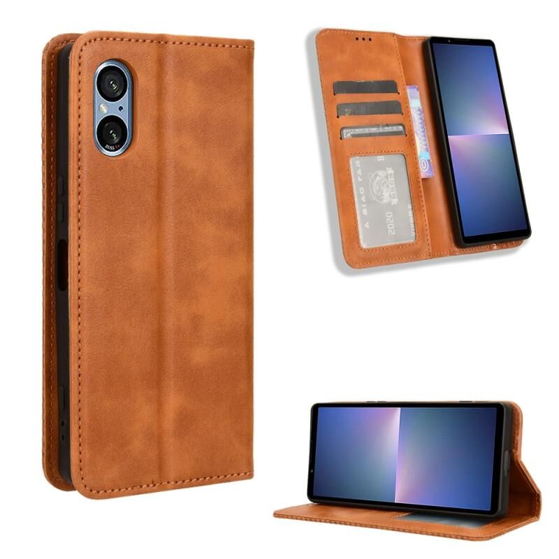 Για το Sony Xperia 5 V 2023 Μαγνητική πόρπη ρετρό υφή δερμάτινη θήκη τηλεφώνου (καφέ)