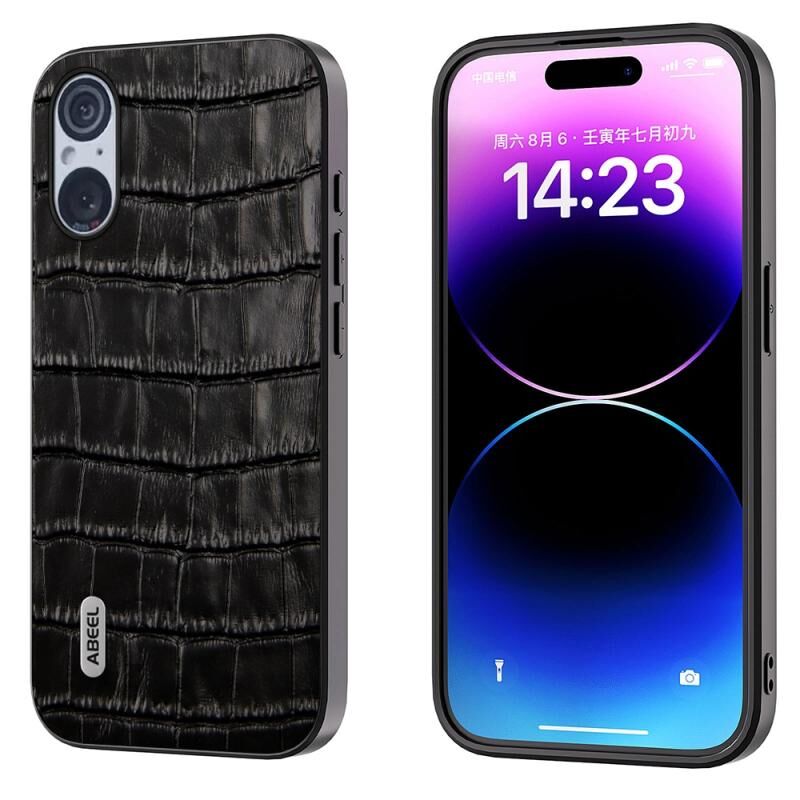 Θήκη τηλεφώνου από γνήσιο δέρμα με υφή κροκόδειλου για Sony Xperia 5 V ABEEL (Καφέ)