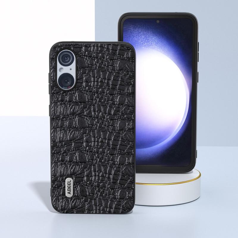 For Sony Xperia 5 V ABEEL Genuine Leather Canopy Black Edge Phone Case(Black)