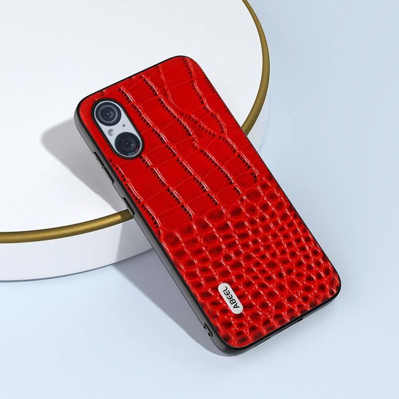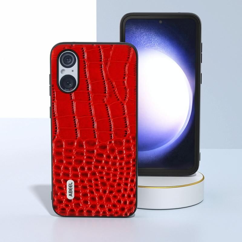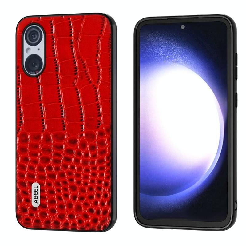 Για Sony Xperia 5 V ABEEL Θήκη Δέρματος με Υφή Κροκόδειλου Μαύρο (Κόκκινο)