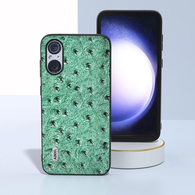 Θήκη τηλεφώνου από γνήσιο δέρμα στρουθοκάμπου για Sony Xperia 5 V ABEEL (Πράσινο)