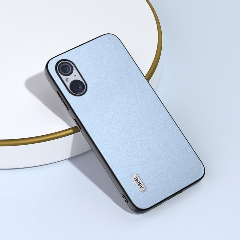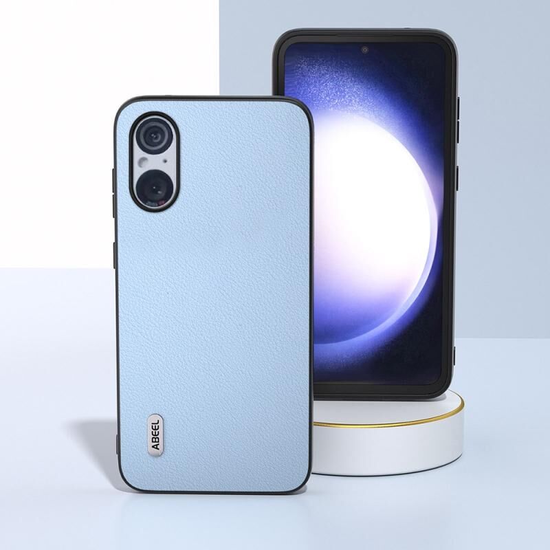 Θήκη τηλεφώνου γνήσιου δέρματος για Sony Xperia 5 V ABEEL, Wave Blue Edge (Μαύρο)