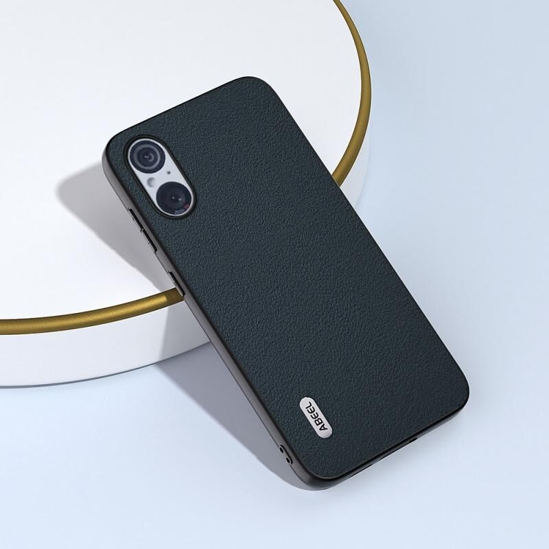 Θήκη τηλεφώνου γνήσιου δέρματος για Sony Xperia 5 V ABEEL, Wave Green Edge (Μαύρο)