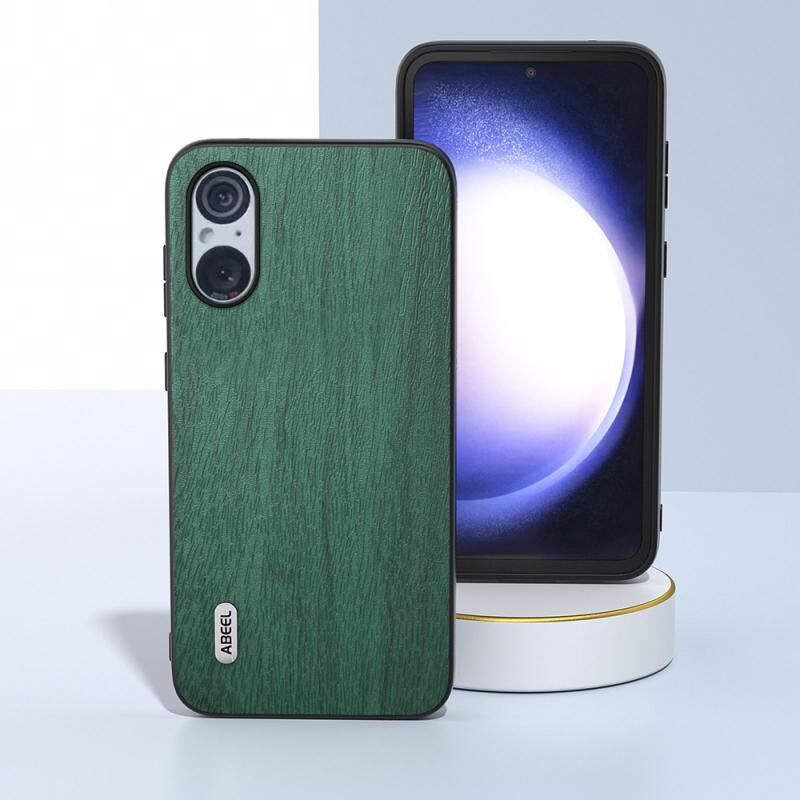 Θήκη τηλεφώνου Sony Xperia 5 V ABEEL με υφή ξύλου από PU (Πράσινο)