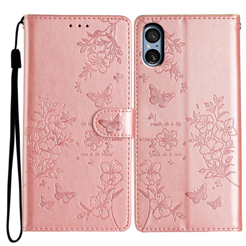 For Sony Xperia 5 V Butterflies and Flowers Leather Phone Case(Rose Gold)