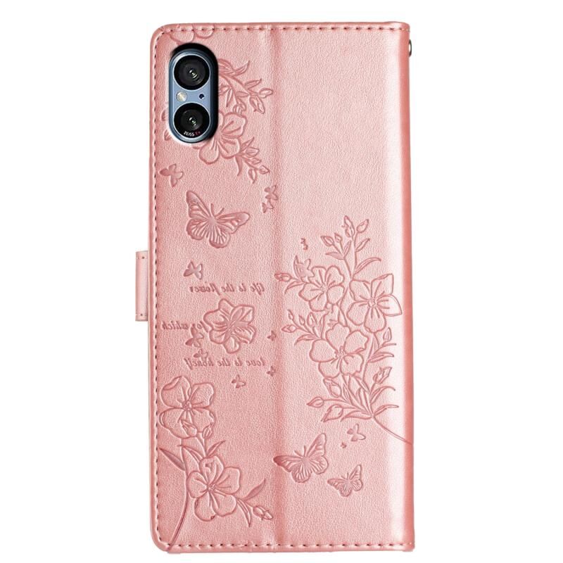 Θήκη τηλεφώνου από δέρμα για Sony Xperia 5 V, με σχέδια πεταλούδες και λουλούδια (Μαύρο)