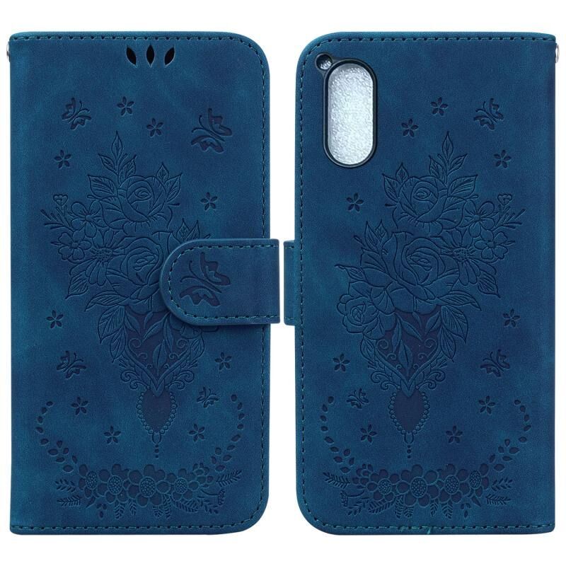 Για Sony Xperia 5 V Πεταλούδα Rose ανάγλυφο δέρμα υπόθεση τηλεφώνου (μπλε)