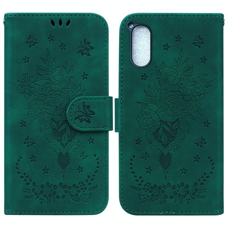 Για Sony Xperia 5 V Πεταλούδα Rose ανάγλυφο δέρμα υπόθεση τηλεφώνου (πράσινο)