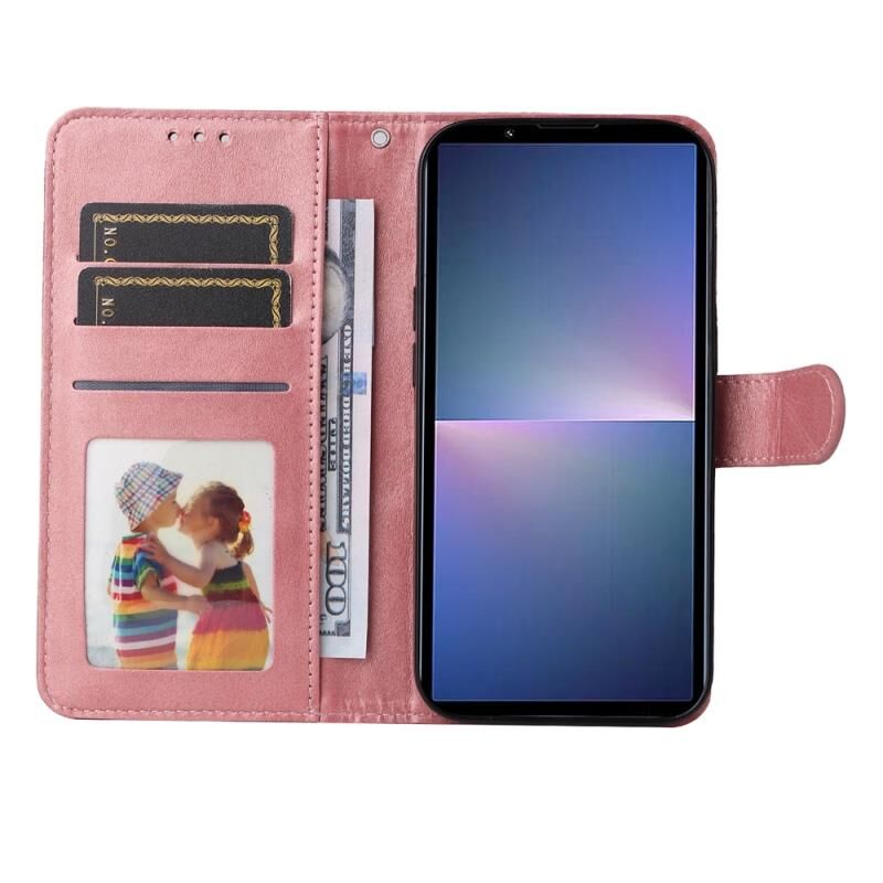 Για Sony Xperia 5 V Κλασική θήκη τηλεφώνου από δέρμα με υφή μοσχαριού (ροζ χρυσό)