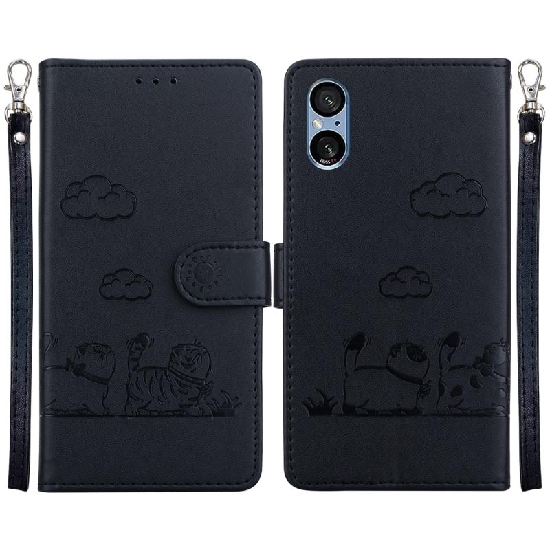 For Sony Xperia 5 V Cute Cats RFID Leather Phone Case(Black)