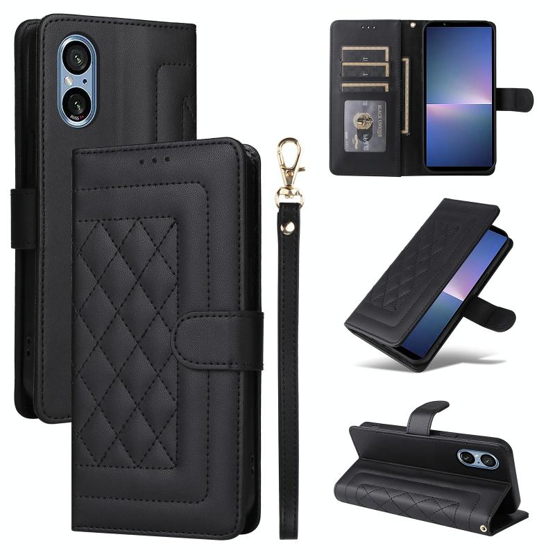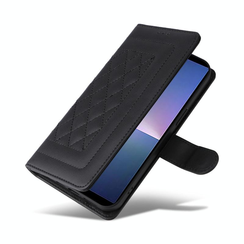 For Sony Xperia 5 V Diamond Lattice Leather Flip Phone Case(Black)