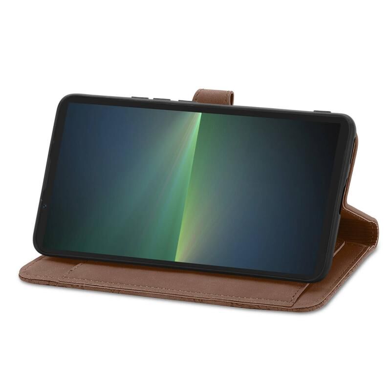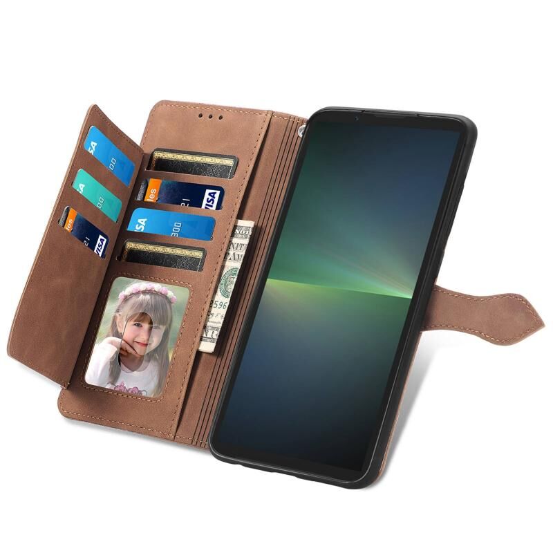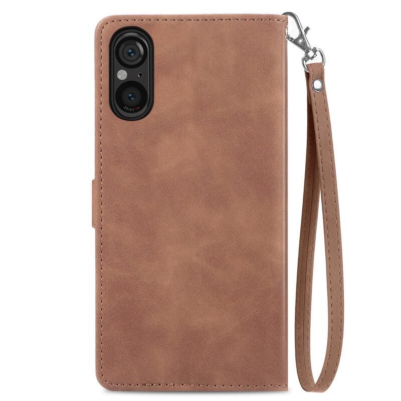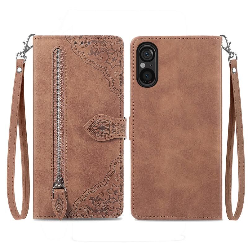 Για Sony Xperia 5 V ανάγλυφο λουλούδι φερμουάρ δερμάτινη θήκη τηλεφώνου (καφέ)