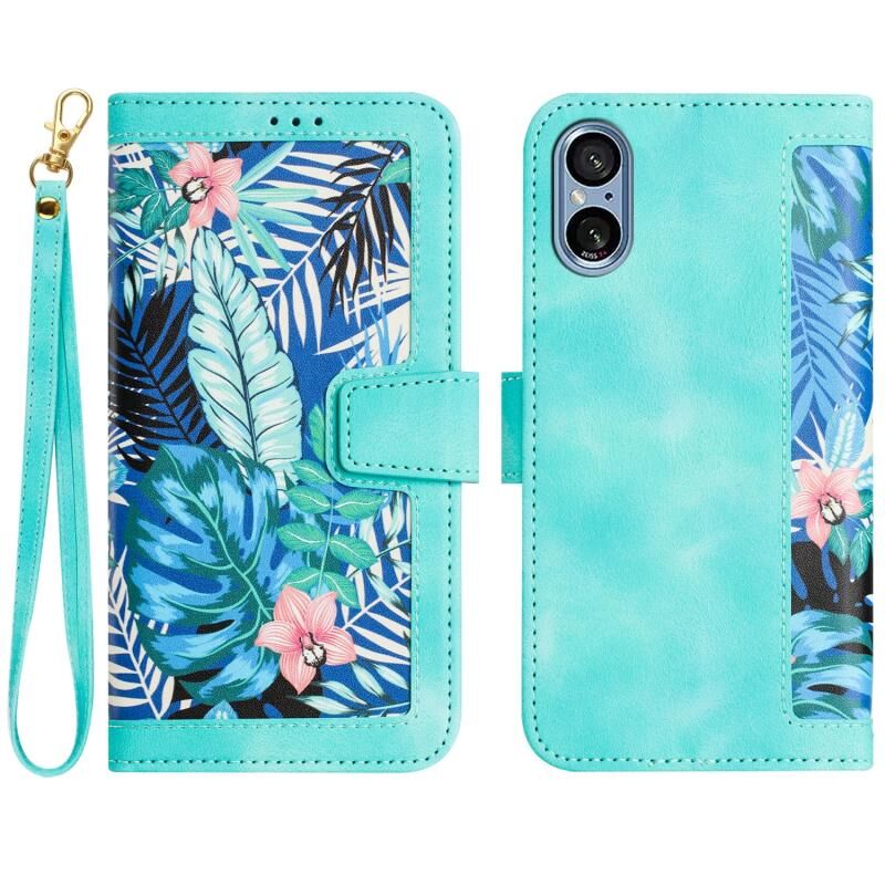 Θήκη τηλεφώνου από δέρμα με λουλουδάτο σχέδιο για Sony Xperia 5 V με κορδόνι (Ανοιχτό Μπλε)