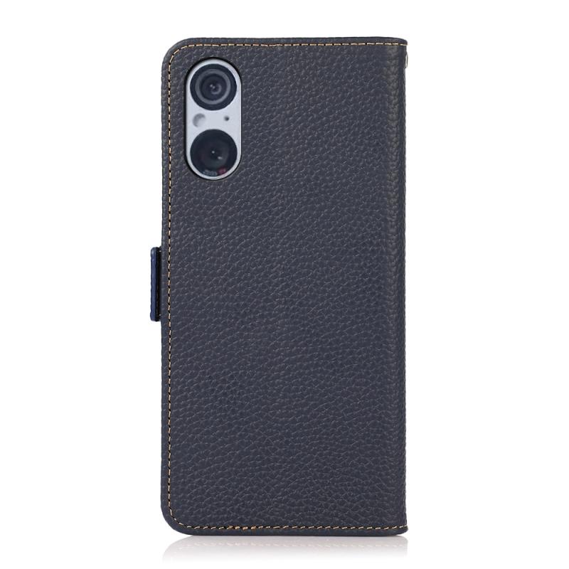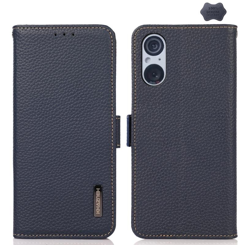 Θήκη KHAZNEH με μαγνητικό κλείσιμο και γνήσιο δέρμα Litchi RFID για Sony Xperia 5 V (Μπλε)