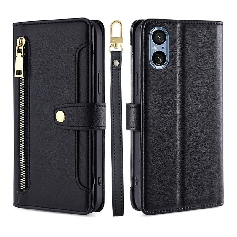 Για το Sony Xperia 5 V Lite Sheep Texture Cross-body φερμουάρ πορτοφόλι δερμάτινη θήκη τηλεφώνου (μαύρο)