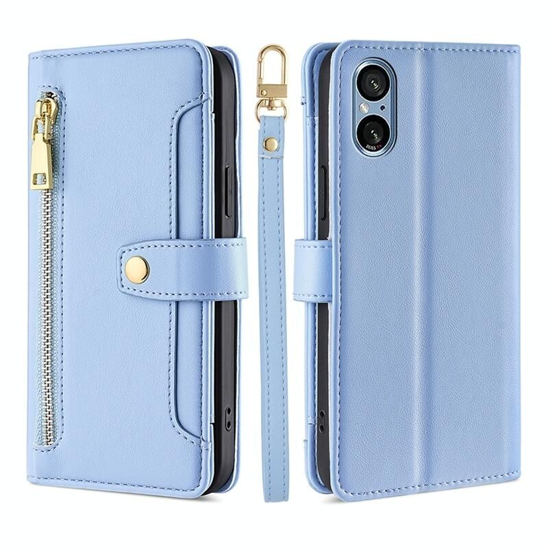 Για Sony Xperia 5 V Lite Πρόβατο Υφή Cross-body φερμουάρ πορτοφόλι δερμάτινη θήκη τηλεφώνου (μπλε)