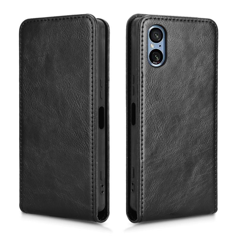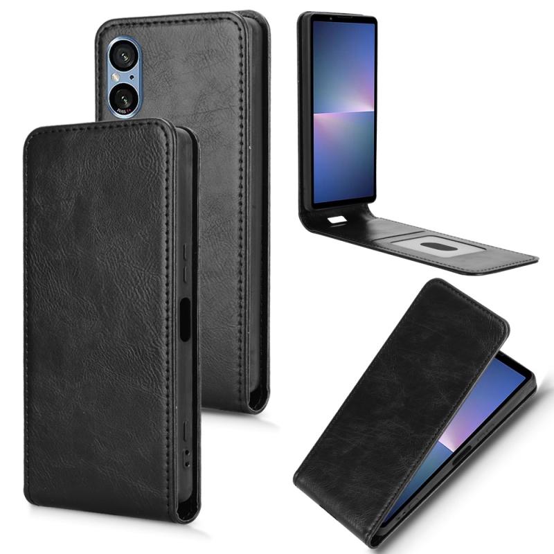 For Sony Xperia 5 V Magnetic Vertical Flip Leather Phone Case(Black)