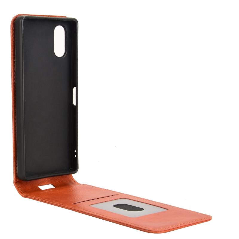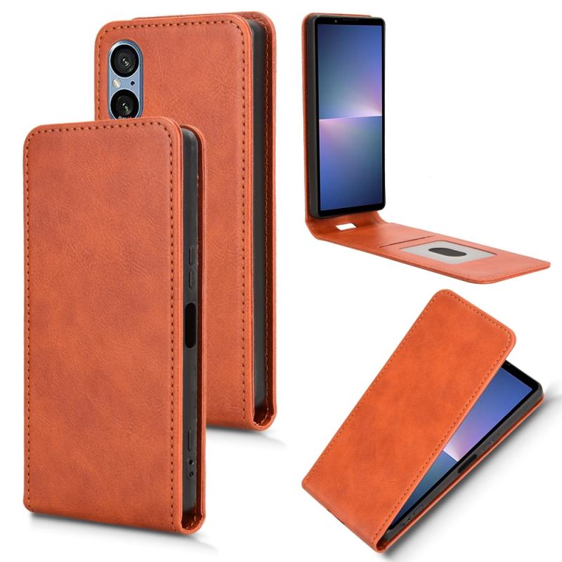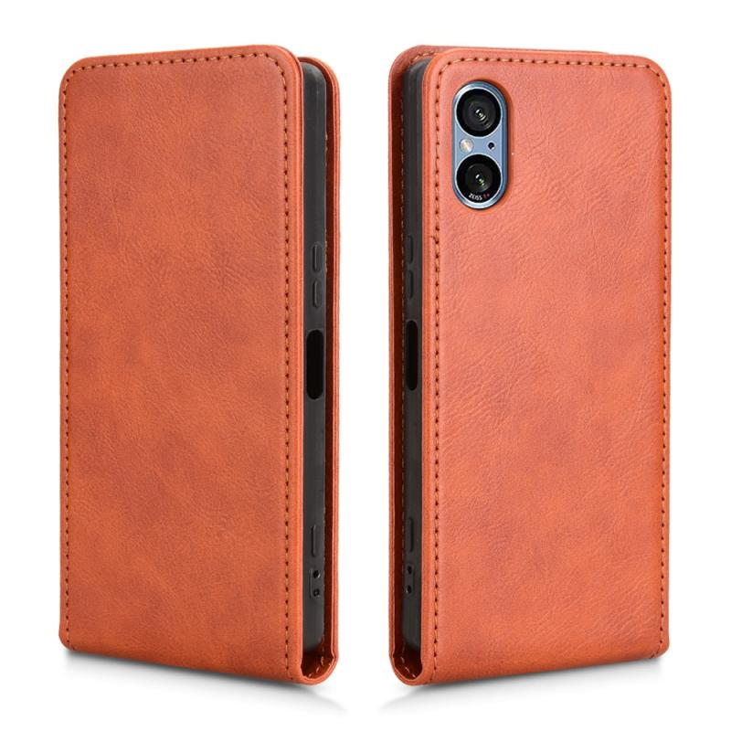 For Sony Xperia 5 V Magnetic Vertical Flip Leather Phone Case(Brown)