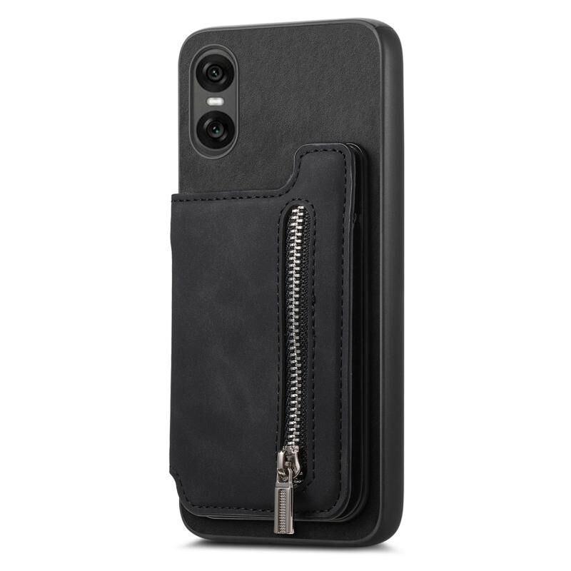 For Sony Xperia 5 V Retro MagSafe Zipper Wallet Card Bag Back Phone Case(Black)