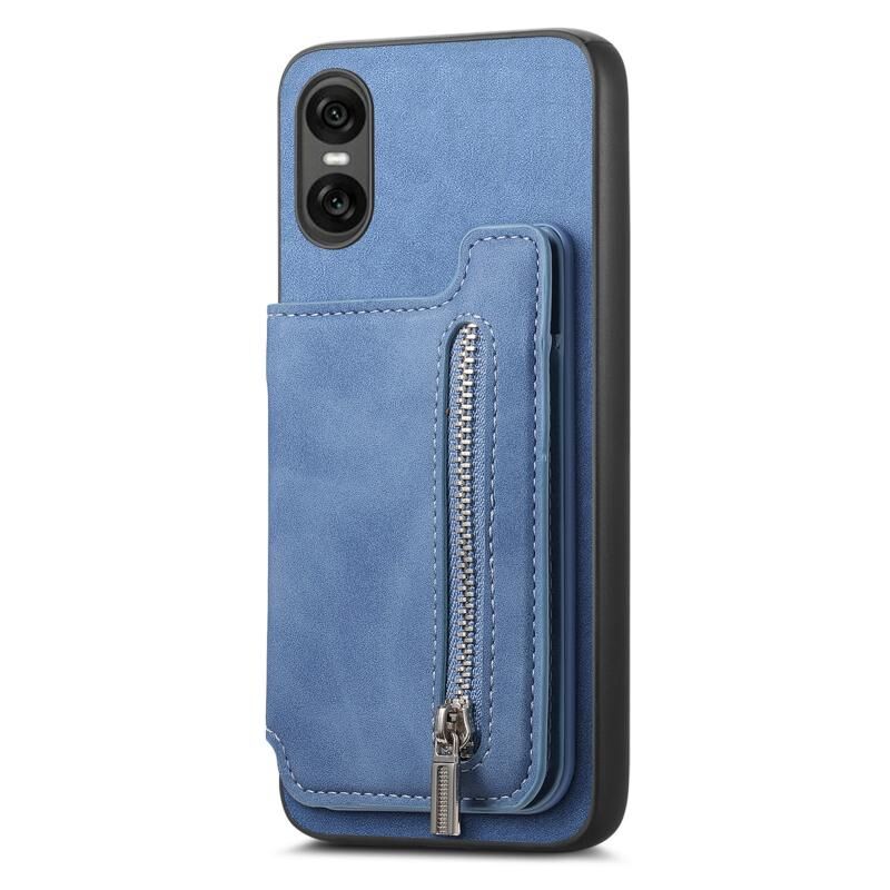 For Sony Xperia 5 V Retro MagSafe Zipper Wallet Card Bag Back Phone Case(Blue)