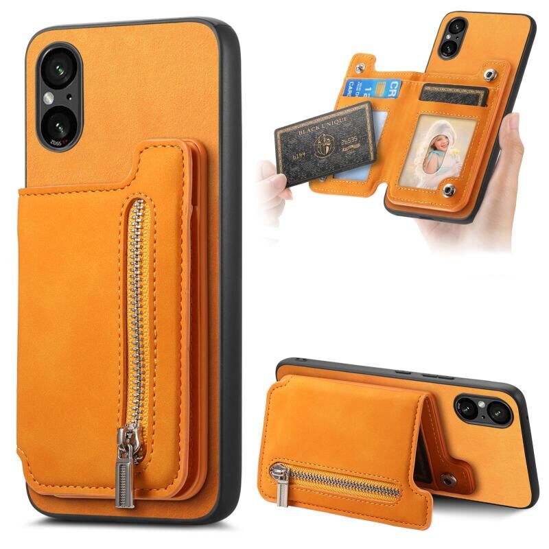 For Sony Xperia 5 V Retro MagSafe Zipper Wallet Card Bag Back Phone Case(Yellow)