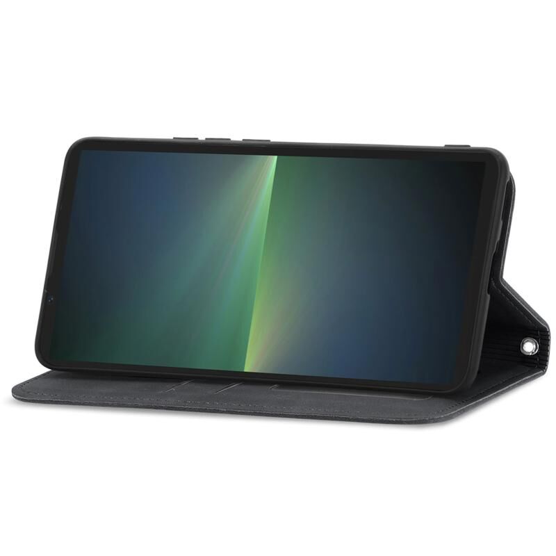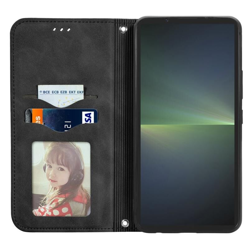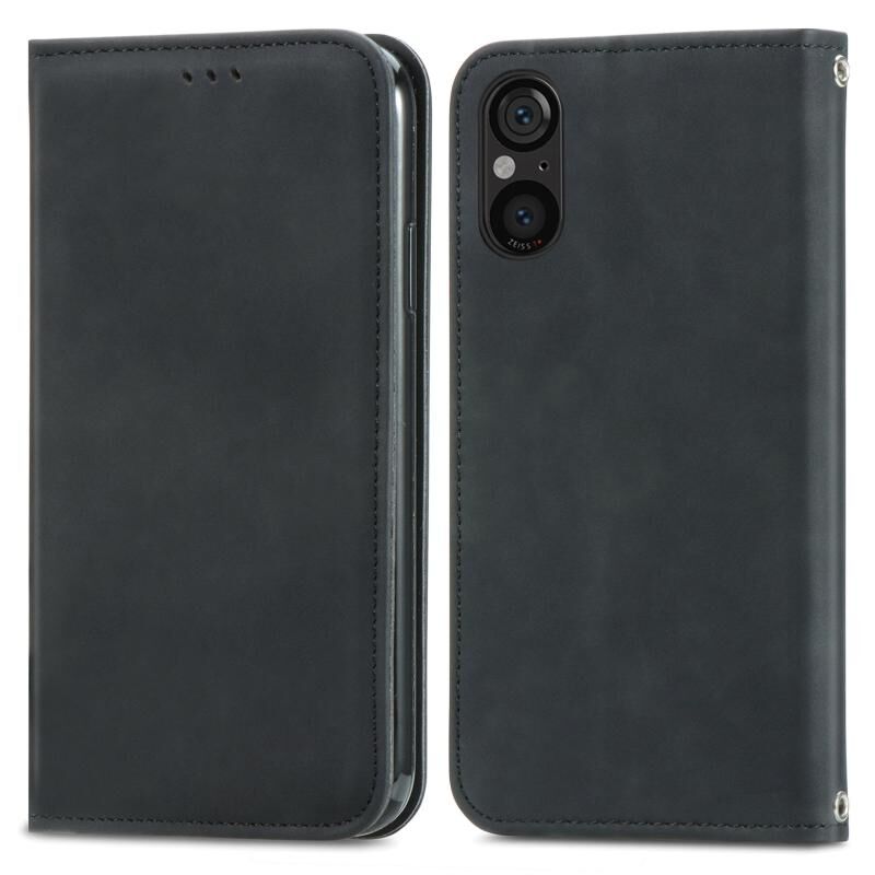 Για το Sony Xperia 5 V Retro δέρμα αίσθηση μαγνητική Flip δέρμα τηλέφωνο υπόθεση (μαύρο)