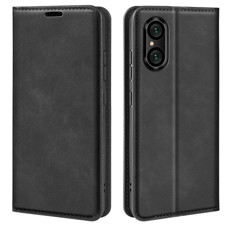 Για Sony Xperia 5 V Retro-skin Μαγνητική δερμάτινη θήκη τηλεφώνου αναρρόφησης (μαύρο)