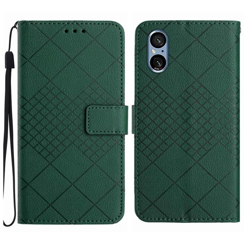 Για Sony Xperia 5 V Rhombic Grid Texture Δερμάτινη θήκη τηλεφώνου (πράσινο)