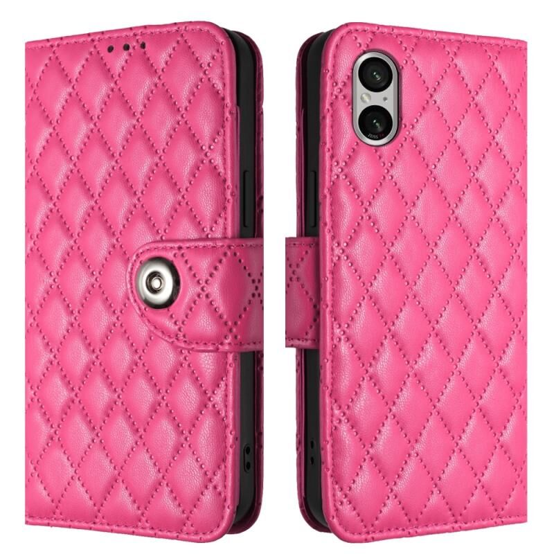 Για το Sony Xperia 5 V Rhombic Texture Flip δερμάτινη θήκη τηλεφώνου με κορδόνι (Rose Red)