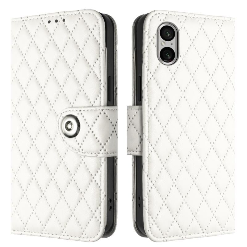 Για Sony Xperia 5 V Rhombic Texture Flip δερμάτινη θήκη τηλεφώνου με κορδόνι (λευκό)