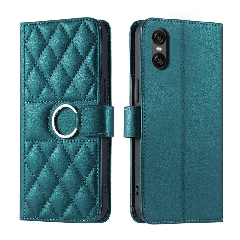 For Sony Xperia 5 V Ring Buckle Rhombic Leather Phone Case(Green)