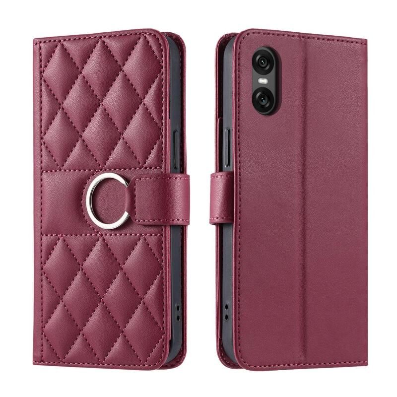 For Sony Xperia 5 V Ring Buckle Rhombic Leather Phone Case(Red)