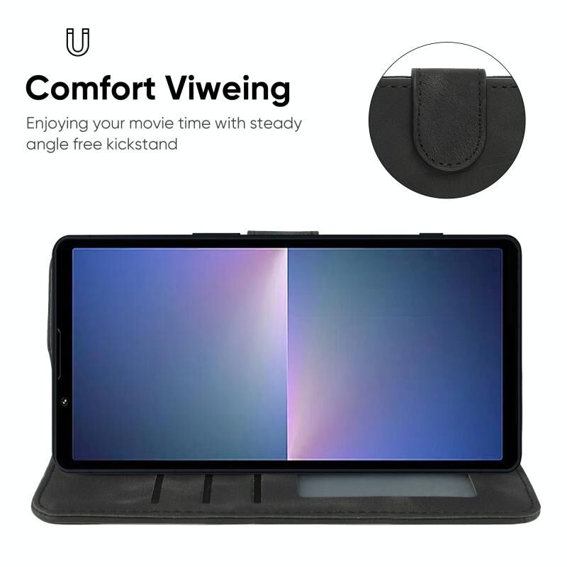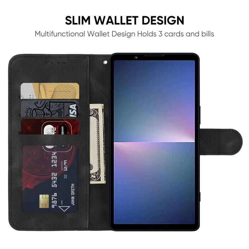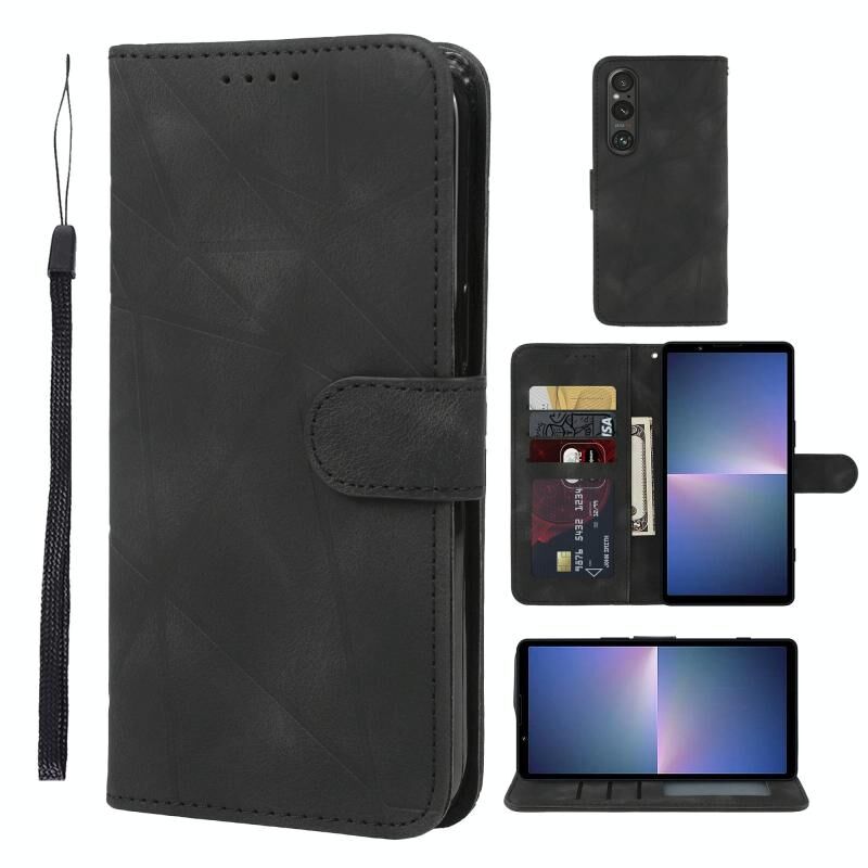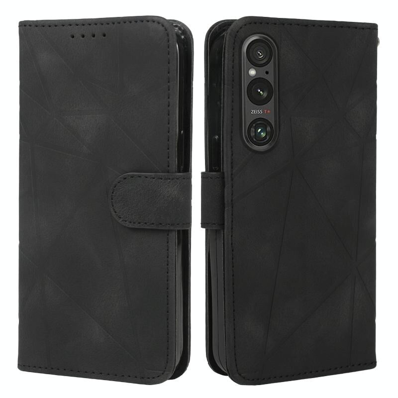 Για το Sony Xperia 5 V Skin Feel γεωμετρικές γραμμές δερμάτινη θήκη τηλεφώνου (μαύρο)