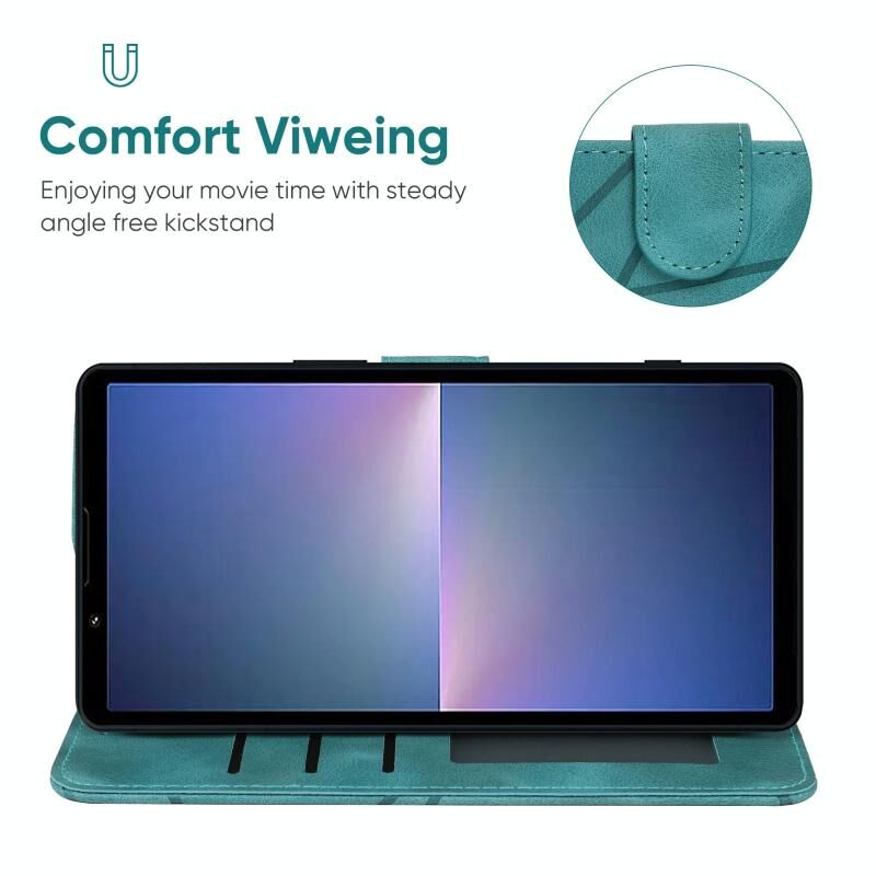 Για το Sony Xperia 5 V Skin Feel γεωμετρικές γραμμές δερμάτινη θήκη τηλεφώνου (πράσινο)